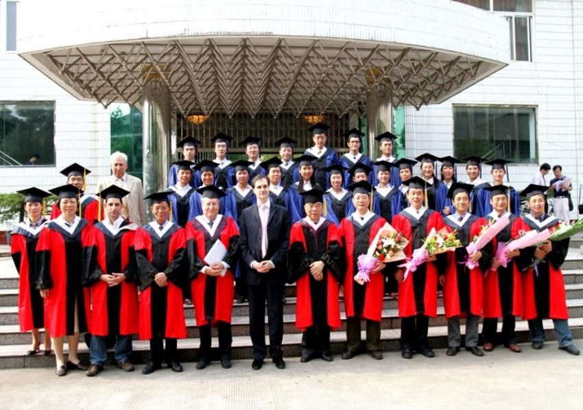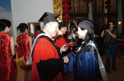 第一届中法班毕业典礼授帽仪式上,Stoltz院士为学生授予学位