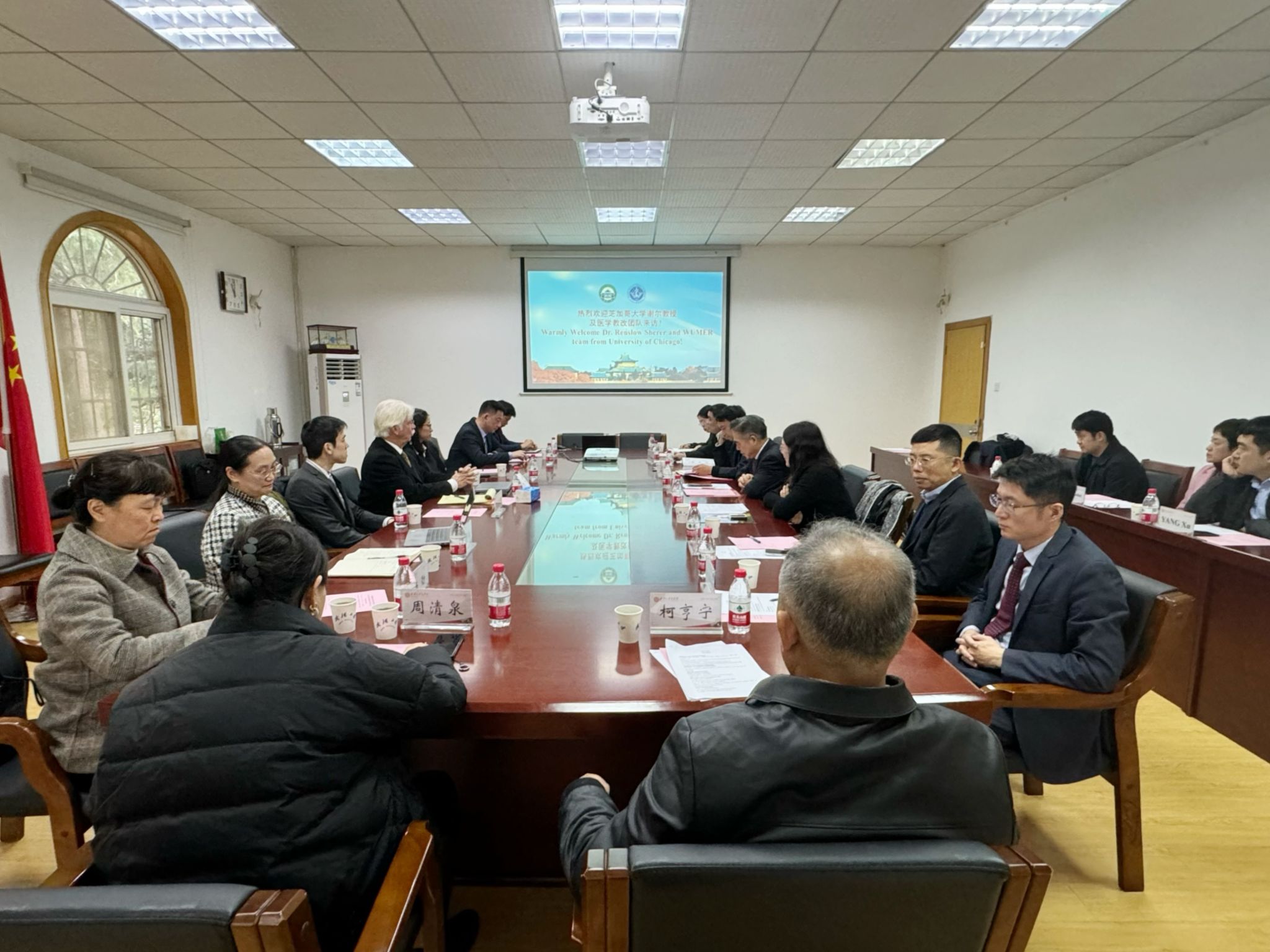 相关负责人与芝加哥大学代表团就两校合作进行了深入交流。与会人员围绕两校医学教育改革课程进展、住院医师规范化培训、专科医师培训、人工智能在医学教育与医疗中的应用等问题展开了热烈的讨论。