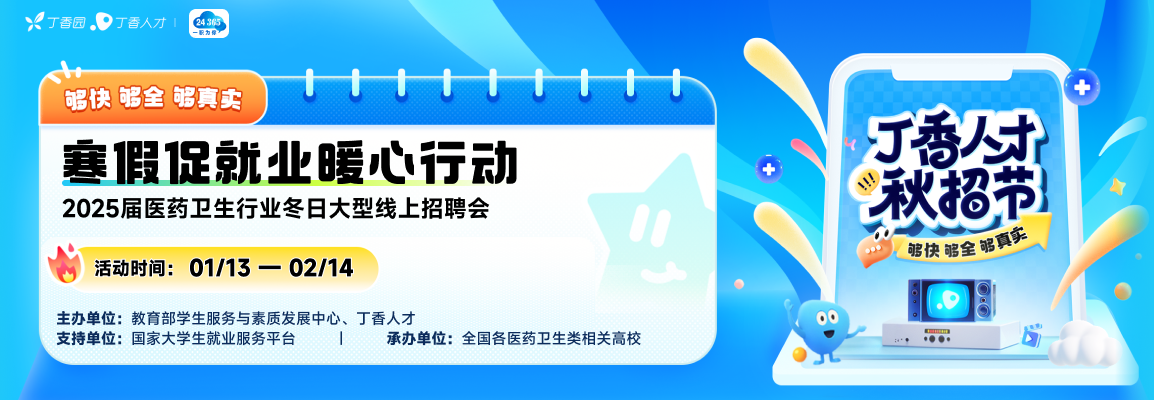 为全面贯彻党的二十大精神,落实党中央、国务院决策部署,抢抓就业关键期,为用人单位、高校和应往届毕业生搭建供需平台。教育部学生服务与素质发展中心于近期联合丁香人才举办2025届毕业生医药卫生行业冬日线上大型招聘会,搭建用人单位和毕业生线上双选交流平台。我们诚挚邀请各用人单位参加此次空中双选会,遴选优秀人才,助力企事业单位长远发展,现将有关事项安排如下: