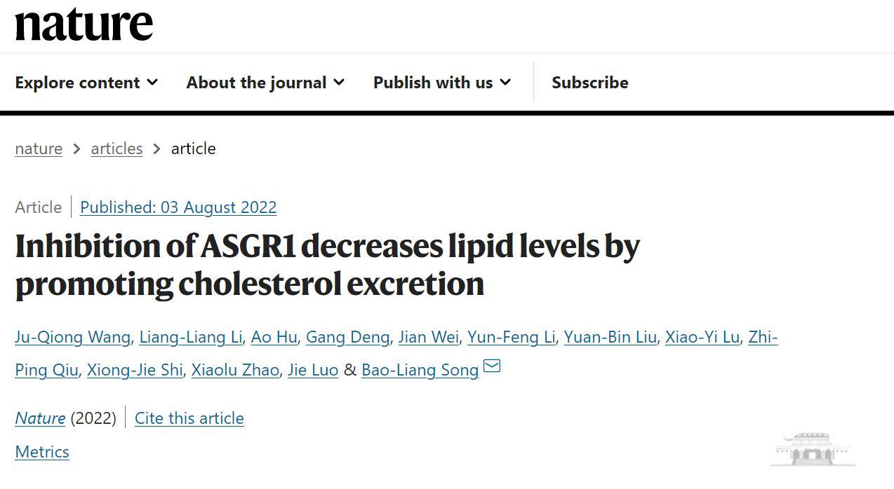 论文题为“Inhibition of ASGR1 decreases lipid levels by promoting cholesterol excretion”(《抑制ASGR1蛋白促使胆固醇外排而降低脂质水平》)。快猫短视频