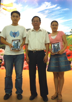 2008年迎新大会上,隆重举行了首届“向近敏教育基金”奖的颁奖仪式,基础医学院免疫学博士罗凤玲、第一临床学院七年制学生韩国鸽首获殊荣。“向近敏教育基金”代表袁光明总经理为两位同学颁奖,向近敏教授的夫人陈晴霞教授亲临大会。