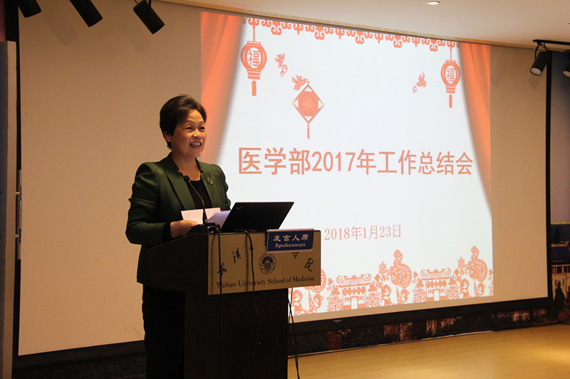 随后,基础医学院、第一临床学院(人民医院)、第二临床学院(中南医院)、口腔医学院(口腔医院)、药学院、健康学院、医学研究院、医学职业技术学院、动物实验中心等9家单位负责人先后发言,汇报2017年度工作完成情况和2018年工作计划。