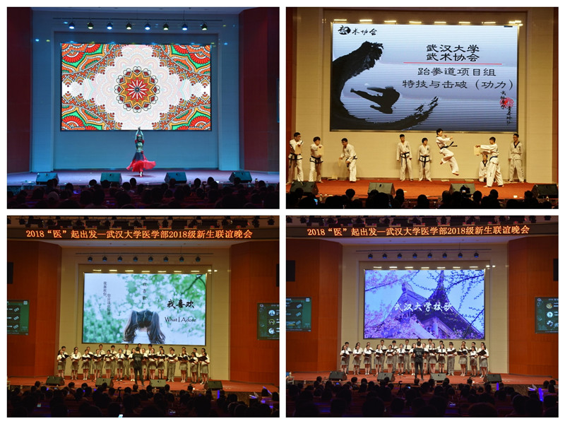 武术协会带来精彩的武术表演《武极珞珈》。看似娇弱的女生以柔化刚、高难度的飞踢木板、让人心惊胆战的徒手碎大石,赢得了在场观众的阵阵欢呼和喝彩。最后,基础医学院的ATP合唱团以《我喜欢》以及《快猫短视频