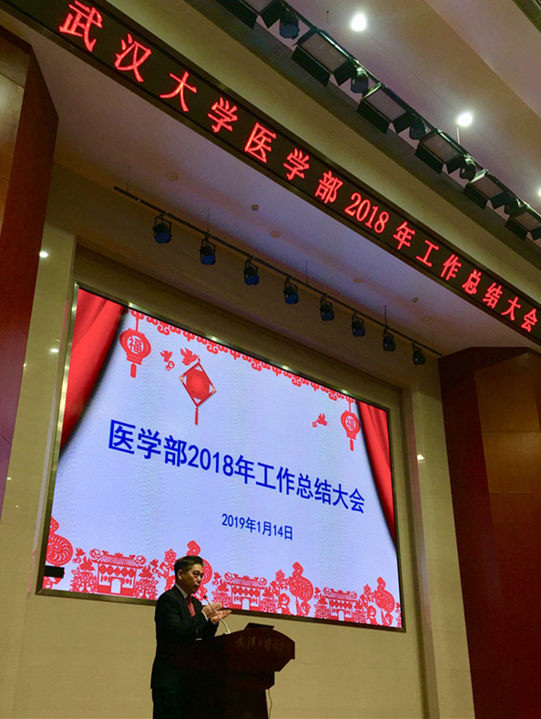 之后,基础医学院、动物实验中心、第一临床学院(人民医院)、第二临床学院(中南医院)、口腔医学院(口腔医院)、健康学院、药学院、医学研究院、医学职业技术学院等9家单位负责人先后发言,汇报2018年度工作主要成效和2019年工作思路。