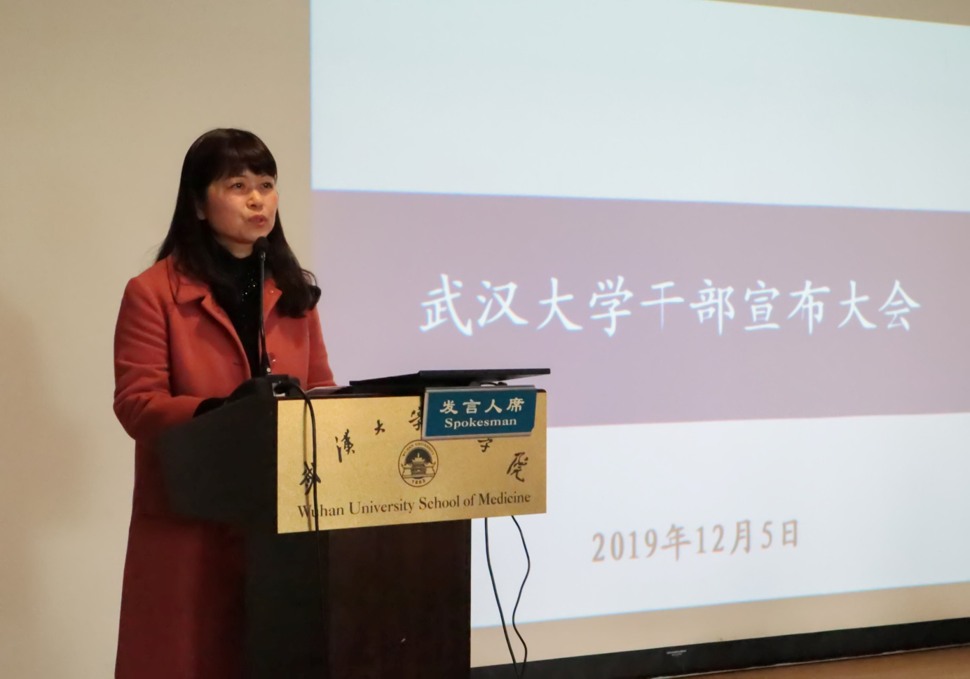 和基础医学院同事们的支持和帮助,感谢蒋明书记打下的良好基础,营造了气顺、劲足、心齐、风正的良好干事创业氛围。她表示,将以新的工作姿态,尽快适应角色转换,以“忠诚心”强化思想政治建设,以“担当心”尽心竭力履职尽责,以“廉洁心”严格修身律己,尽心履职,尽力作为,争创工作新业绩,为武大医学发展贡献力量。