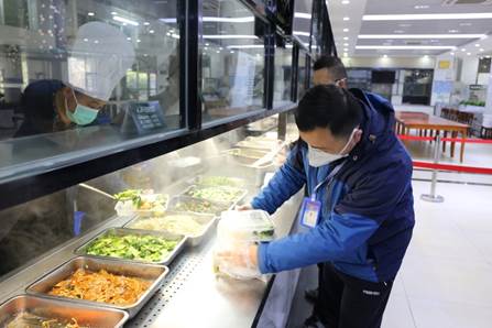 在梅园食堂,厨师们正在紧张忙碌。疫情防控期间,为减少人员流动,后勤服务集团为全校留校学生和安全保卫、社区服务等工作人员临时提供免费送餐服务,每餐提供盒饭1400余份。校领导们对后勤服务集团的工作给予充分肯定,并详细了解了原材料供应、人力投入、卫生消杀等方面的情况,强调要全力以赴为留校学生做好餐饮保障工作,同时提醒后勤员工做好个人防护。