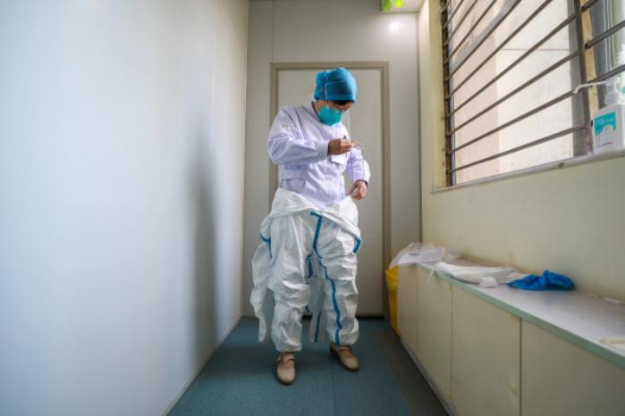 仅有口罩,张继先觉得还不够。她又在此时嘱咐科室人员在网上订购了30套细帆布的白色工作服,当做隔离服。2019年12月31日,这批工作服寄到了医院。在进入隔离区域时,张继先要求大家多加一层防护。“不管怎么说,我们多穿一层,对自己防护就好一点。”张继先说。她还明确要求隔离区内的所有医疗用品均不可与其他患者混用。“为了避免二次感染,医疗废弃物做好单独处理。”