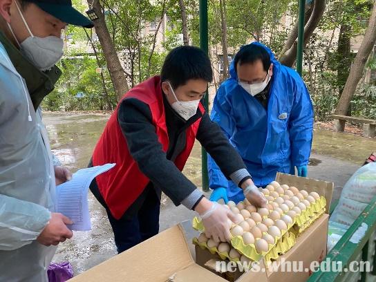 发放网购货品,他们是有心人。为避免留校师生在自强超市领取网购物资时出现的人员聚集,学校在校内设置了11个网购物资的分发点,突击队派出22名队员迅速上岗,帮助发放货品。这段时间,每天有近千份网购物资被配送至各分发点,面对货品检点、电话联系、信息核对等大量、繁琐的工作,突击队员们一丝不苟,确保货品快速、准确的发放到每位师生手上。遇到有人不能来及时领取的情况,突击队员便延时等候;遇到年迈的老同志拿不动重物的情况,突击队员还会协助送货上门。校工会刘仲沛在每天现场发放结束后,都会主动加班加点,把货品送到每一位不方便前来的老同志家里。