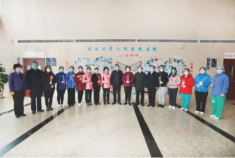 看望慰问期间,应勇和王晓东一行还参观了东院区为庆祝第110个国际“三八”妇女节,搭起的由奋战抗疫一线的女性医护工作者的照片组成的“连心桥”,并与大家合影留念。