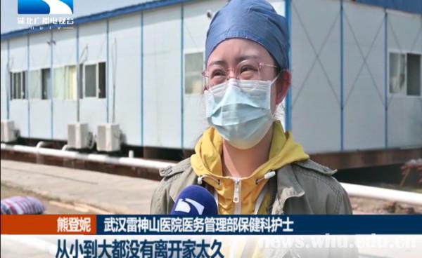 ▲女儿在雷神山医院接受湖北广播电视台采访图片来源于湖北广播电视