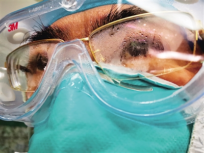 四层手套、三层防护服、口罩、防护镜、面罩、正压头套……因为穿戴特殊防护设备,平常一台5至10分钟的手术,现在要用3倍的时间来完成。