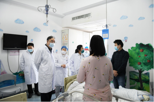 马晓伟一行先后来到胸外科、产科以及门诊实地调研。马晓伟与辛勤工作在一线的医护人员深入交流,详细了解门诊流程管理、住院收治流程、病房感控管理以及科室接诊收治病人量等具体情况,并就强化疫情防控、有序恢复正常诊疗提出了指导性建议。
