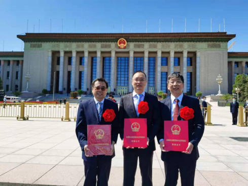 参加表彰大会的中南医院代表,从左至右分别为:徐海波、夏剑、检验科党支部书记胡汉宁