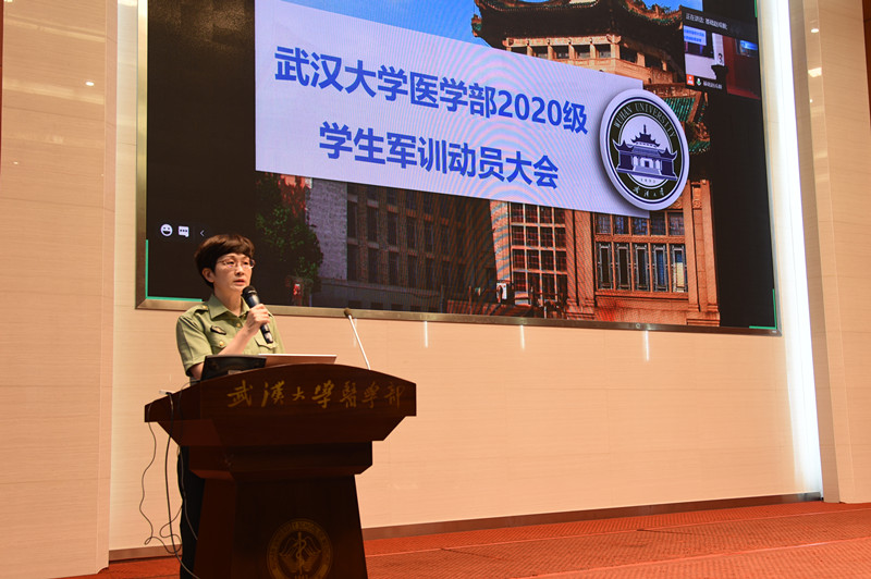 8号楼裕璧厅为主会场,3号楼301教室和302教室为分会场。军训五团团长余帅,五团政委、健康学院党委副书记焦丽,副团长何华出席大会,全体教官、指导员和660余名新生参加。