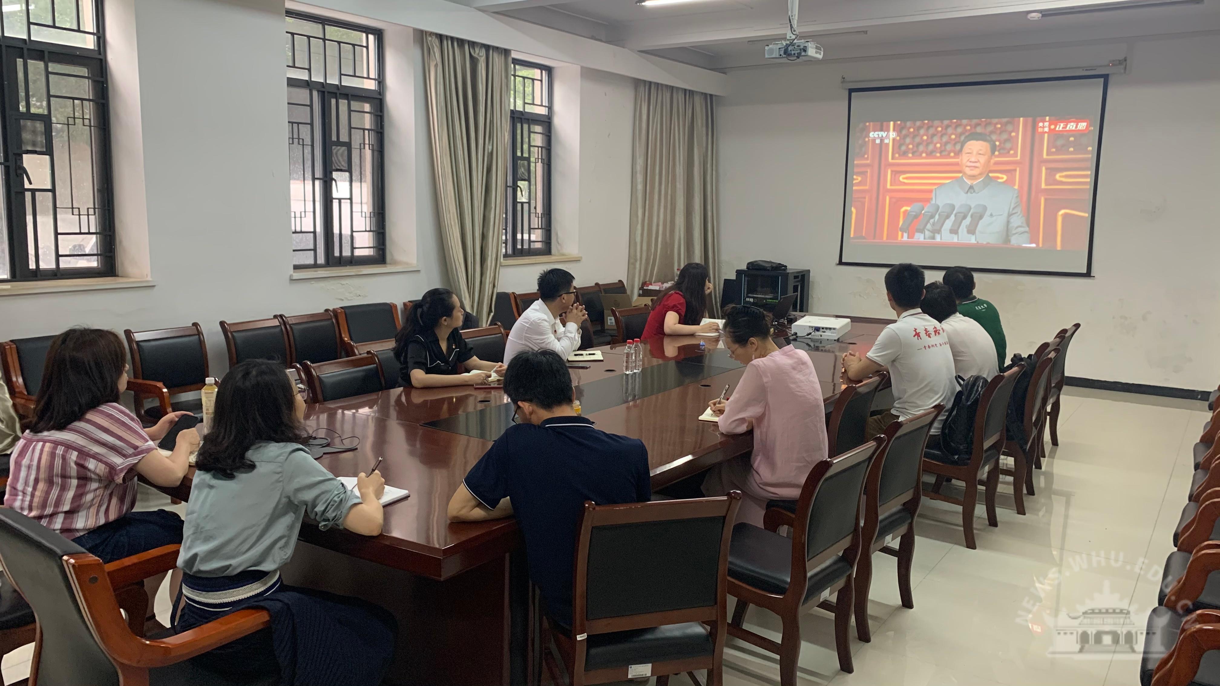 人文社会科学研究院党员观看庆祝大会