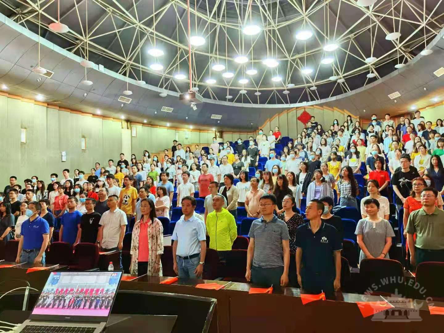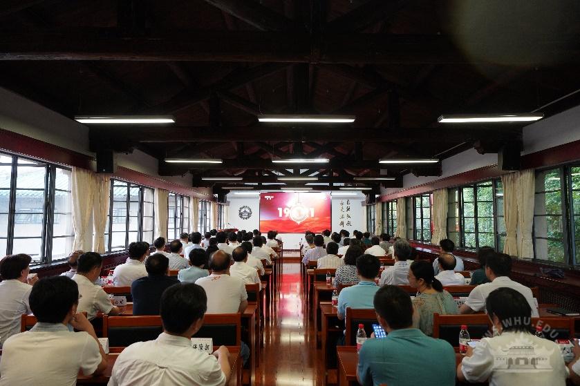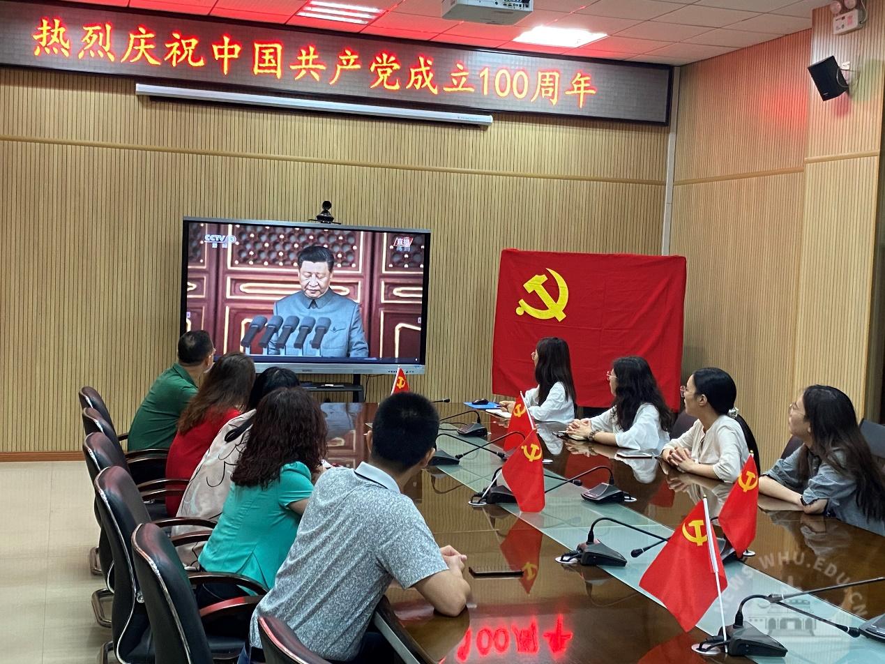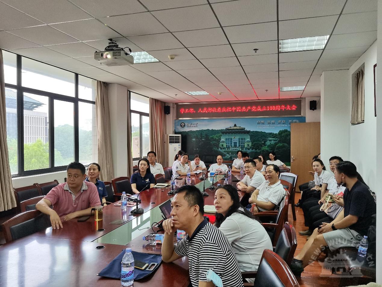 中央党史学习教育中管高校第十指导组组长欧可平等全体成员,校党委书记韩进,校党委副书记、校长窦贤康等全体在校的校领导,各分党委(党总支)书记、机关与直属单位党委下属各单位主要负责人在行政楼主会场全程观看庆祝大会直播盛况,各二级单位组织党员干部、师生员工在分会场观看庆祝大会。