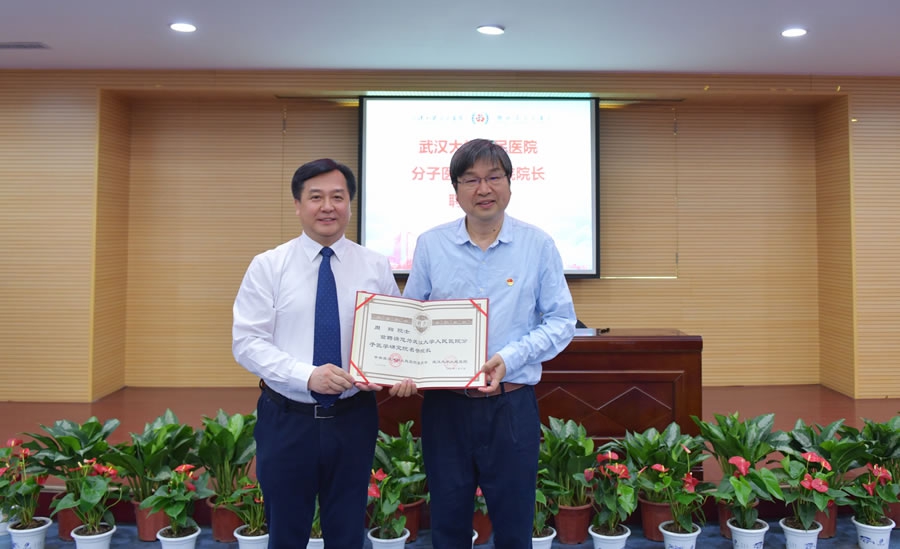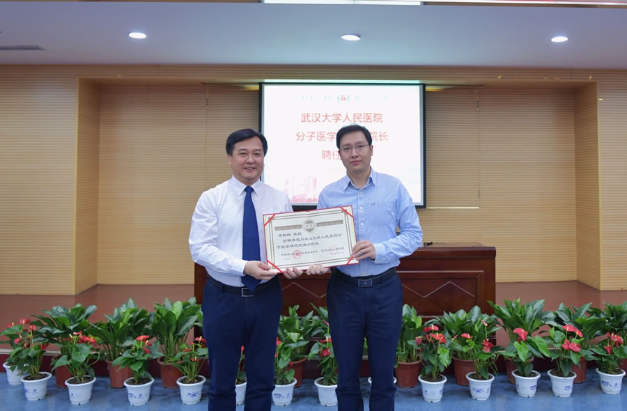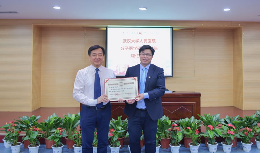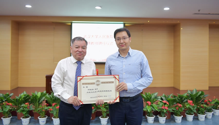 人民医院分子医学研究院名誉院长聘书,为邓鹤翔教授、余锂镭教授颁发快猫短视频