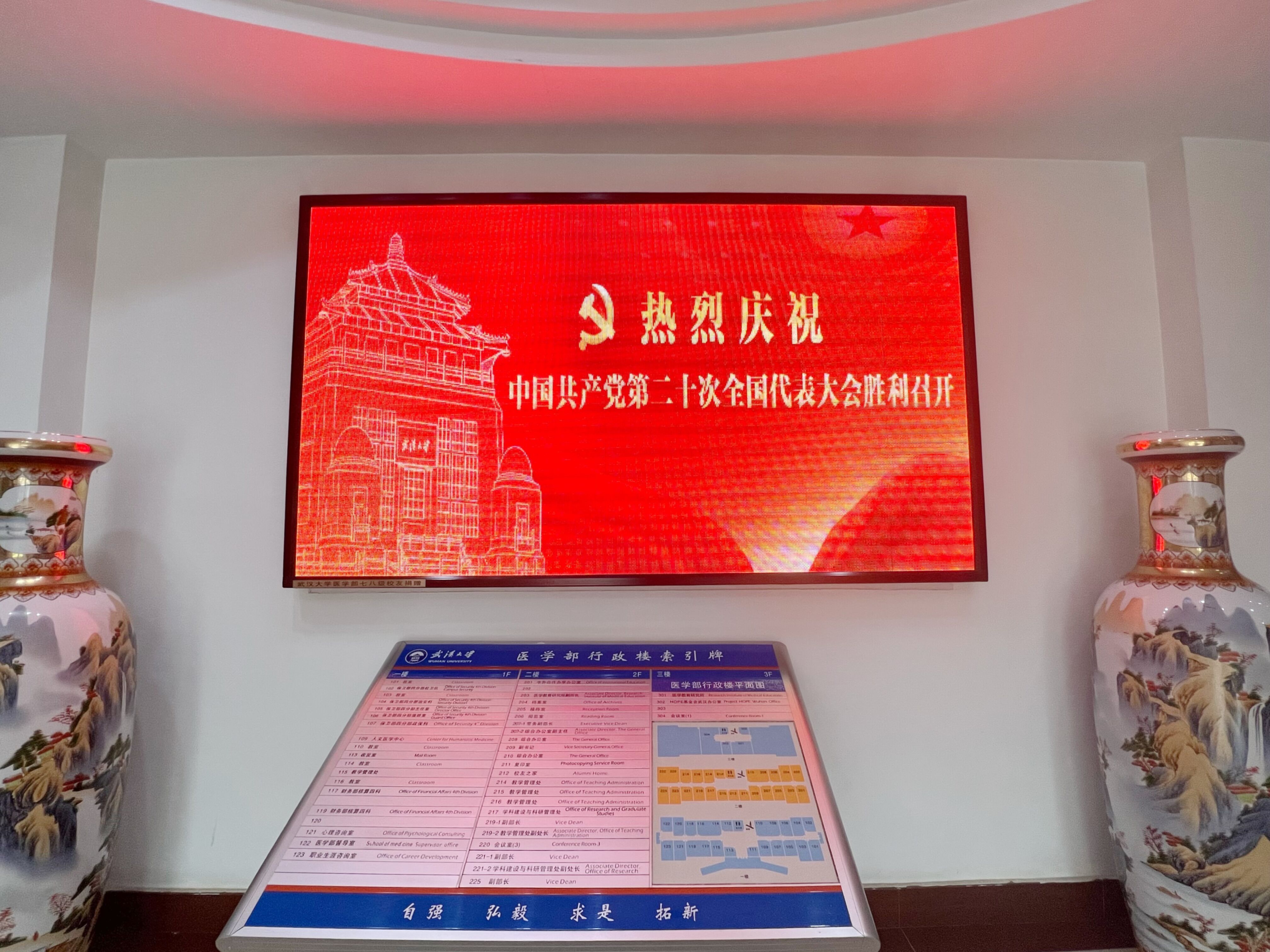 口腔医学院党委书记付宏宇:党的二十大是党和国家历史上具有里程碑意义的大会,习近平总书记所作的报告总揽全局、气势恢宏、内涵丰富,为全面建设社会主义现代化国家、全面推进中华民族伟大复兴指明了前进方向、擘画了宏伟蓝图,让我深感振奋、备受鼓舞。党的二十大报告提出,要推进健康中国建设,把保障人民健康放在优先发展的战略地位。口腔健康,全身健康。武大口腔将进一步发挥“双一流”学科优势,紧紧围绕人民健康需求,积极响应国家生育支持政策体系和应对人口老龄化战略要求,大力推动儿童和老年人口腔健康医疗服务水平提升、人才培养和科研技术攻关,持续推进公立医院高质量发展,着力打造国家口腔区域医疗中心,为人民群众提供更高质量的全方位全周期口腔健康服务。全体武大口腔人要深入学习贯彻党的二十大精神,进一步领悟“两个确立”的决定性意义,更加紧密团结在以习近平同志为核心的党中央周围,朝着打造“中国特色、世界一流”的口腔医学院校和现代化医院的宏伟目标阔步迈进!
