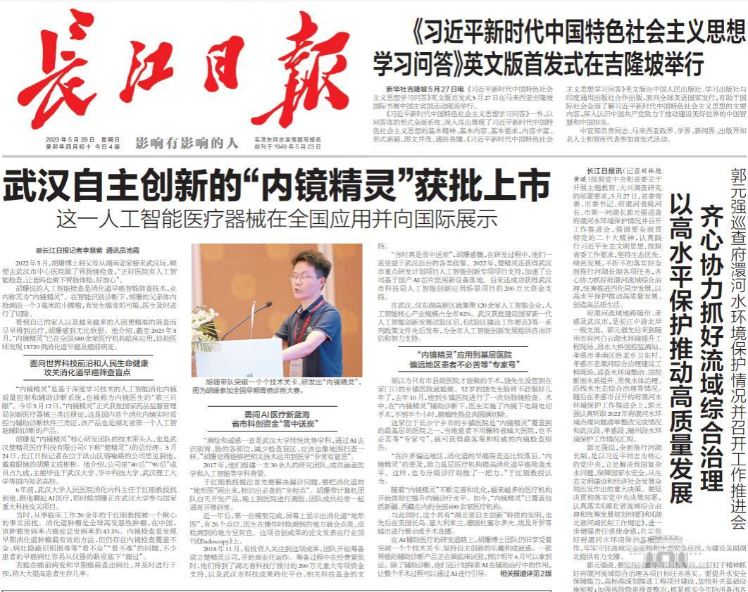 《长江日报》头版头条刊发《武汉自主创新的“内镜精灵”获批上市》