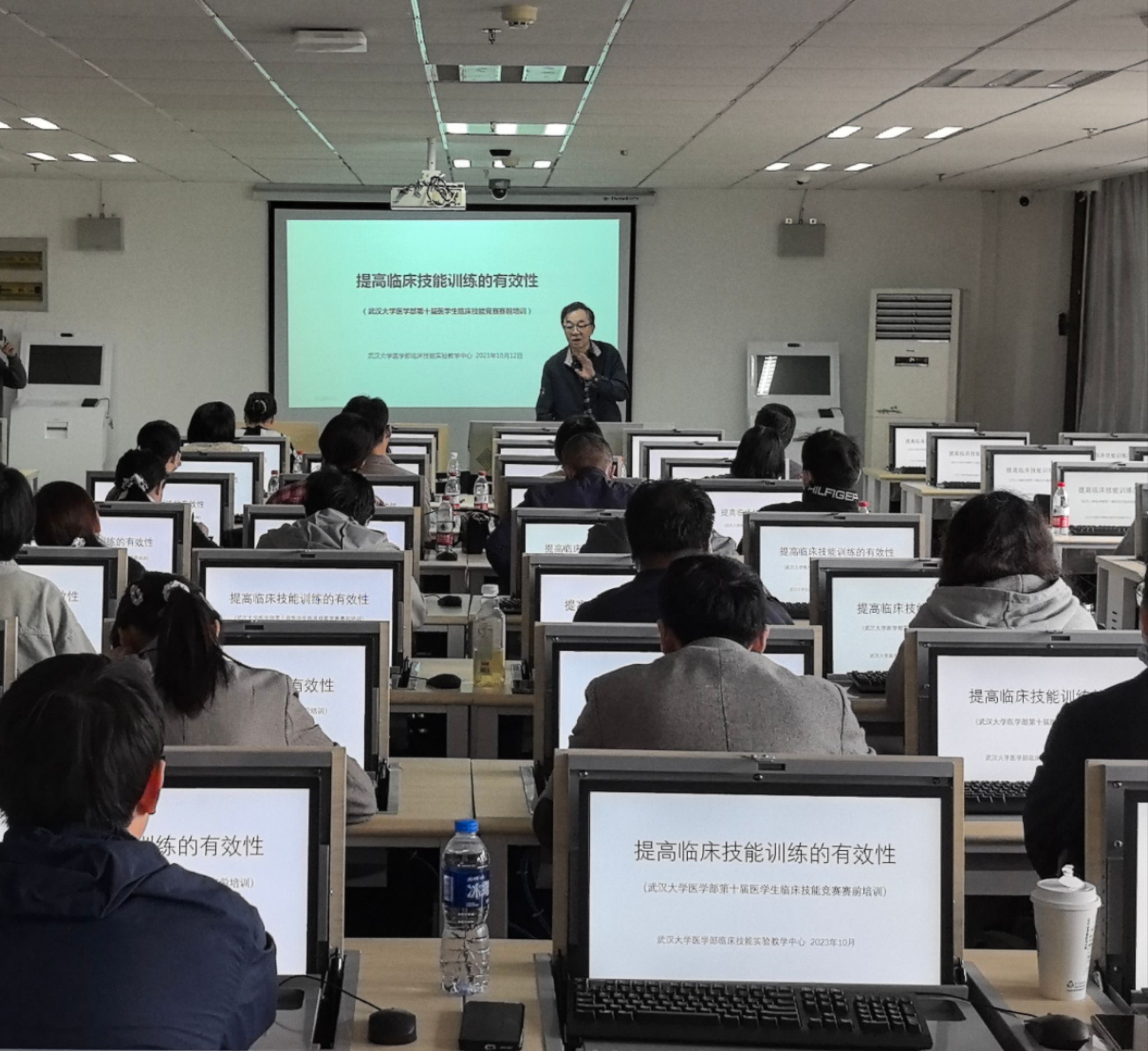 临床技能实验教学中心熊世熙教授担任培训主讲教师,结合生动有趣的案例详细阐释了“如何提高临床技能训练的有效性”,重点介绍刻意练习的原理和方法、好的训练计划、及时有效的反馈等。黄梦婷老师以大学生临床技能竞赛站点及赛道设计为切入点,着重讲解如何评判学生临床技能操作表现。