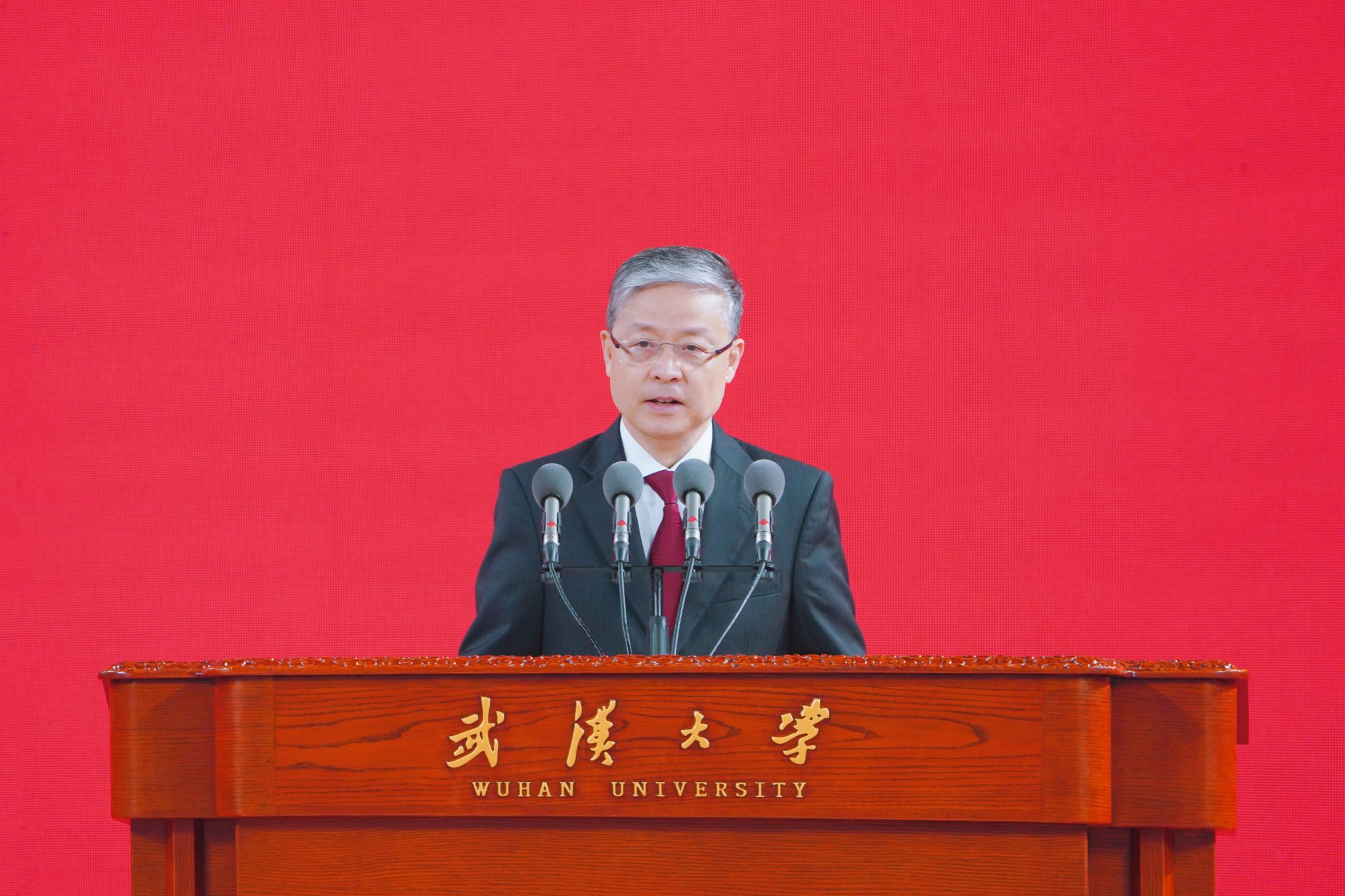 陈东升作为校友代表发言,向母校送上了最诚挚的祝福。他回忆了在母校求学的青葱岁月,分享了四十年来与母校相伴的深厚感情。他表示,不管身在哪里,离开多久,校友们的根永远都在珞珈山。回馈母校、建设母校、让母校变得更好,是每位珞珈学子最朴素的情感和愿望。未来,全体校友将一如既往、持续不断地为母校的发展贡献力量,共同为中国式现代化建设和中华民族伟大复兴作出武大贡献。