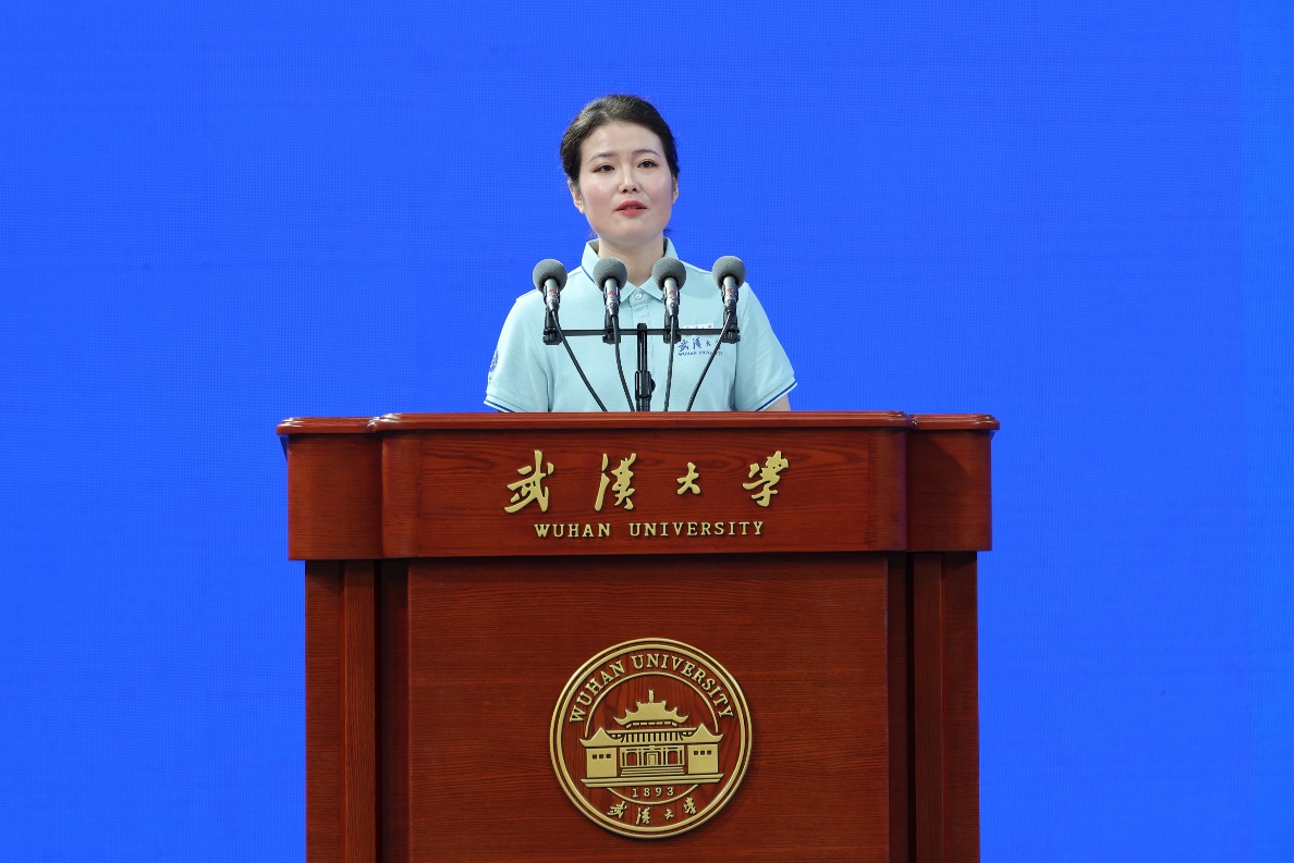 在校生代表、前沿交叉学科研究院2022级博士生张瑞文追忆五年研途,与学弟学妹们分享了自身感悟:“初入研途,方向从哪里来?面对磨砺,困局该怎么破?勇于创新,力量要从何寻?”她以三问勉励新生,并给出了自己的回答:强烈的使命感、坚韧严谨的品质、学校和团队的力量。最后,她祝愿大家砥砺奋斗、在珞珈山下磨砺真本领,在将“小我”融入“大我”的火热实践中绽放绚丽之花。