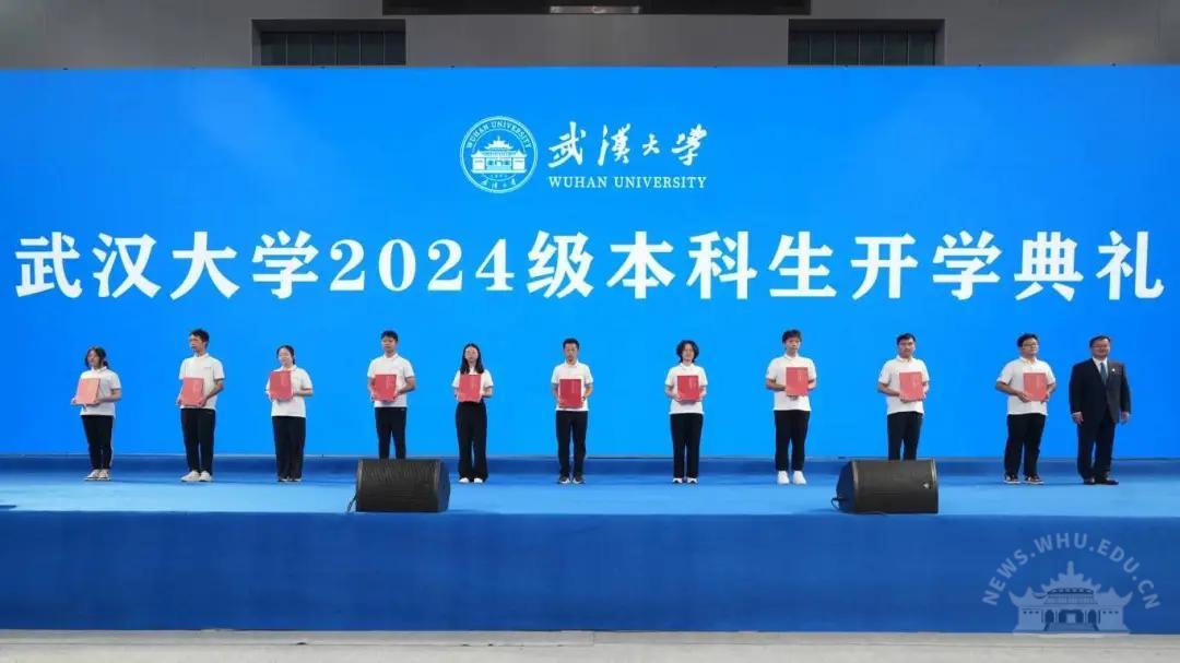 作为在校生代表,数学与统计学院何斌、艺术学院王小果、水利水电学院赵鑫龙、公共卫生学院陈雅霖共同欢迎和祝福2024级新生:“初入珞珈,愿学弟学妹们心怀青春热血,不失勇担使命的自强之魂;坚守家国情怀,不失矢心报国的弘毅之志;独具拙见真知,不失崇尚真理的求是之风;葆有不竭勇气,不失敢为人先的拓新之力。”