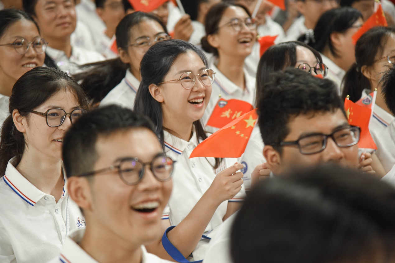 典礼开始前的暖场环节气氛热烈,引得现场新生阵阵欢呼和掌声。现场辅导员代表与新生代表合唱《开学第一课》《不为谁而作的歌》《骄傲的少年》《强国一代有我在》。“来到珞珈最期待什么?”“你的志向是什么?”“想对毕业时的自己说什么?”迎新视频展现了新生朝气蓬勃的精神面貌和对大学生活的无限憧憬。主题视频《一步》勉励大家“走遍山河,永攀科学高峰,放眼世界,练就过硬本领,向着谋求人类福祉、推动社会进步、实现国家富强的目标,一步一步,砥砺奋进。”