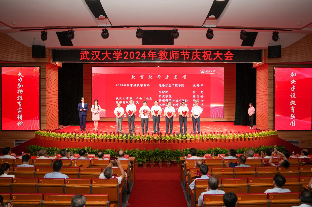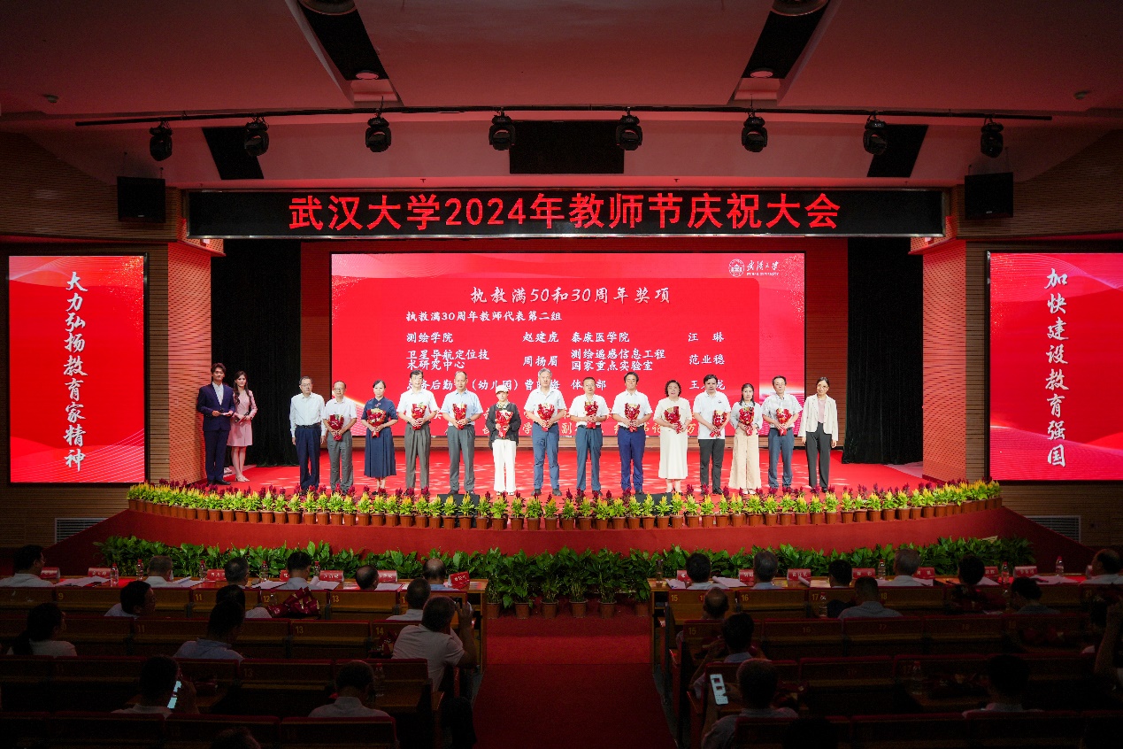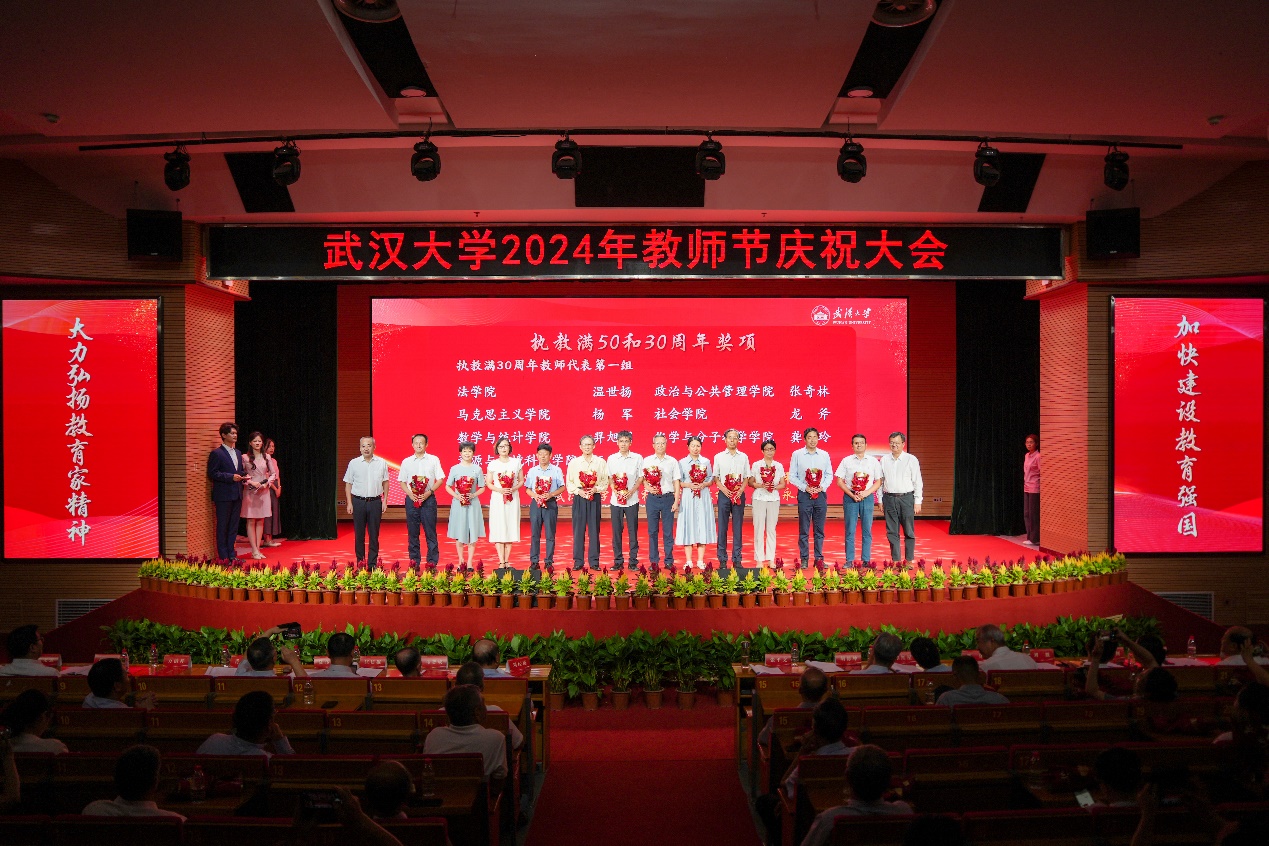 大会上表彰了一批优秀教师,包括师德师风类、教育教学类、科研成果类、人才项目类、执教满50周年及30周年……这些奖项共同见证了武大教师在为党育人、为国育才方面取得的优异成绩。校领导与院士、人文社科资深教授代表等为获奖教师代表颁奖。