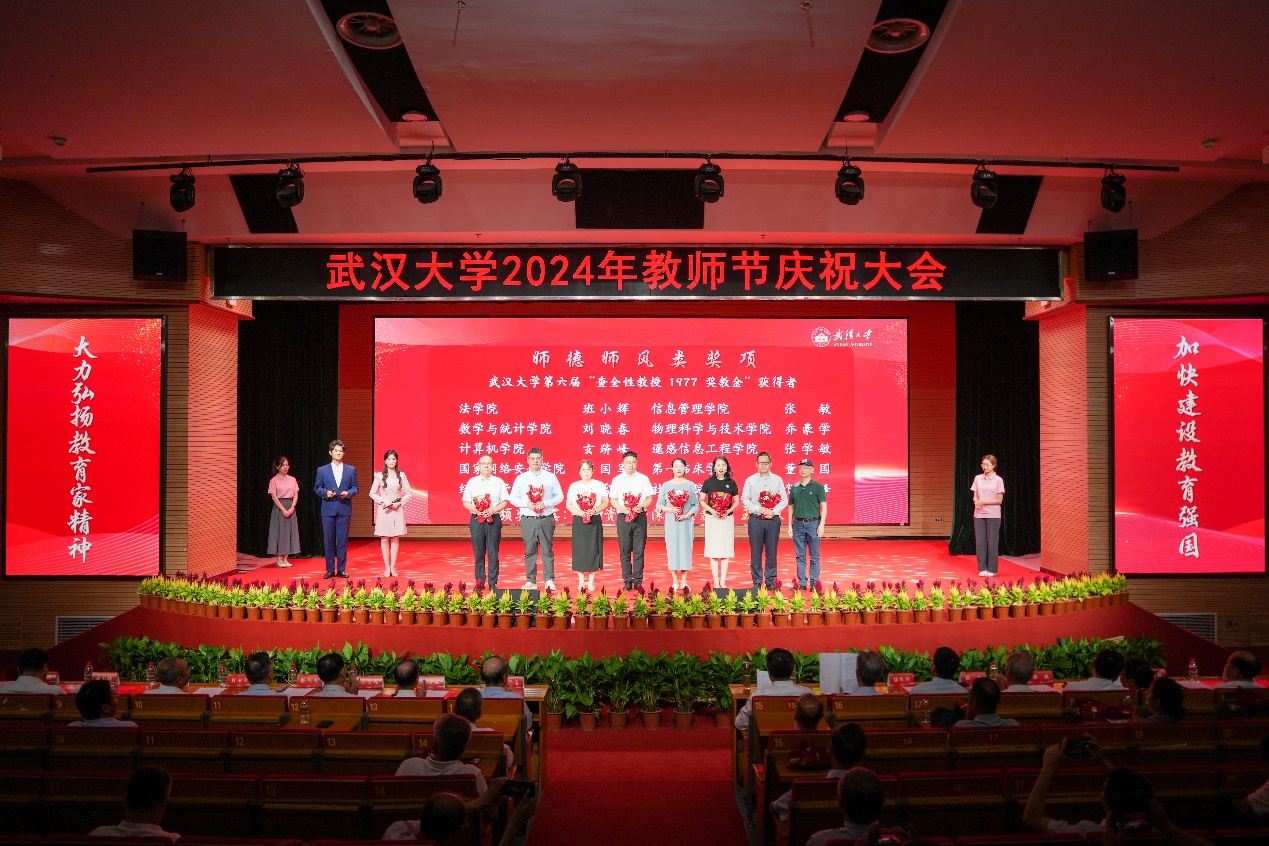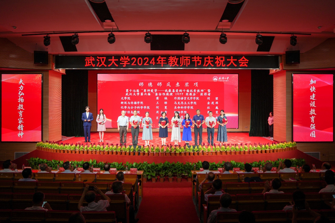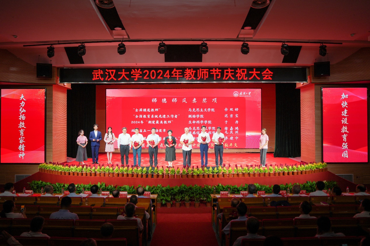 大会上表彰了一批优秀教师,包括师德师风类、教育教学类、科研成果类、人才项目类、执教满50周年及30周年……这些奖项共同见证了武大教师在为党育人、为国育才方面取得的优异成绩。校领导与院士、人文社科资深教授代表等为获奖教师代表颁奖。