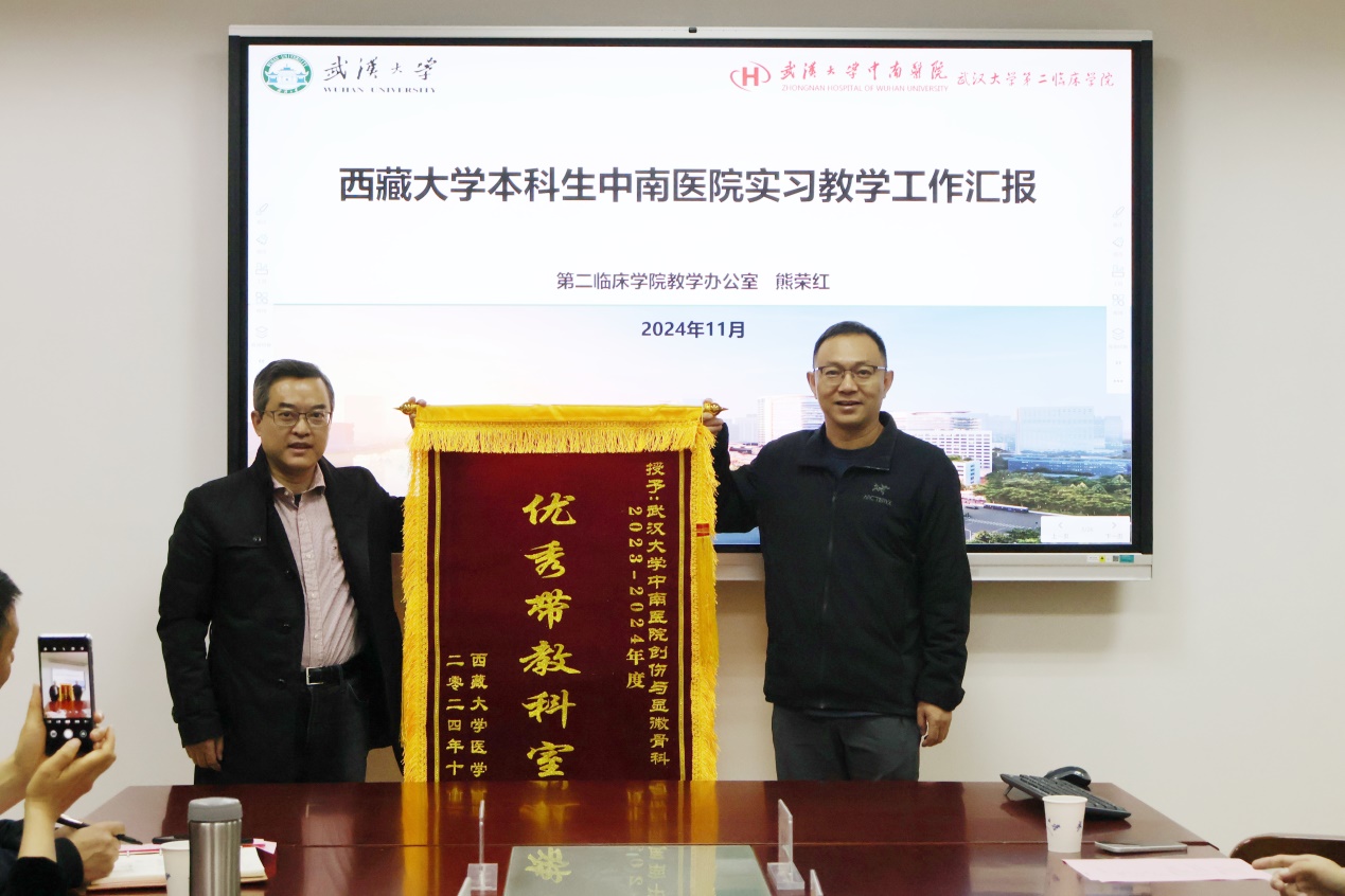 西藏大学医学院向第二临床学院颁发优秀带教科室锦旗