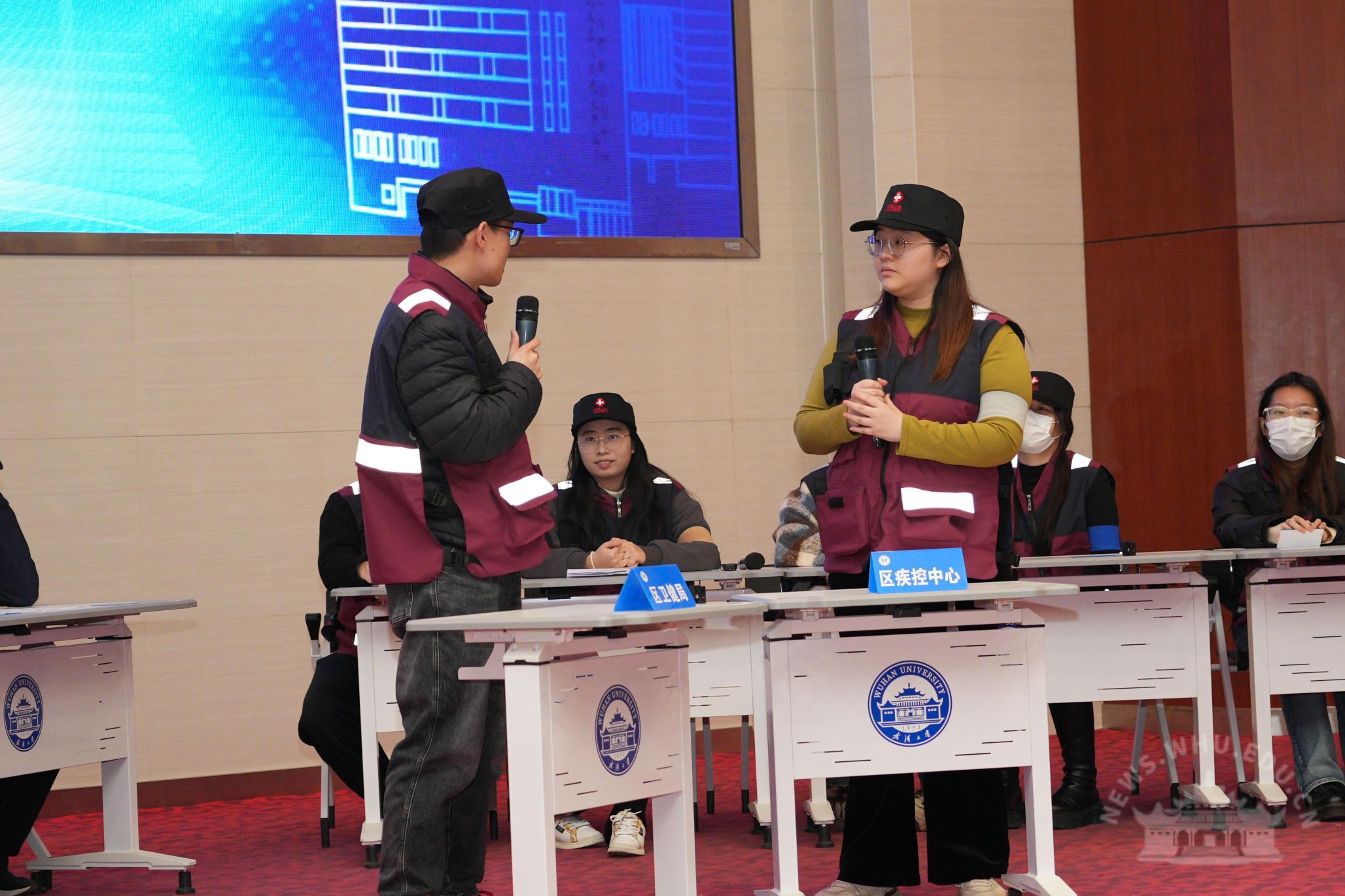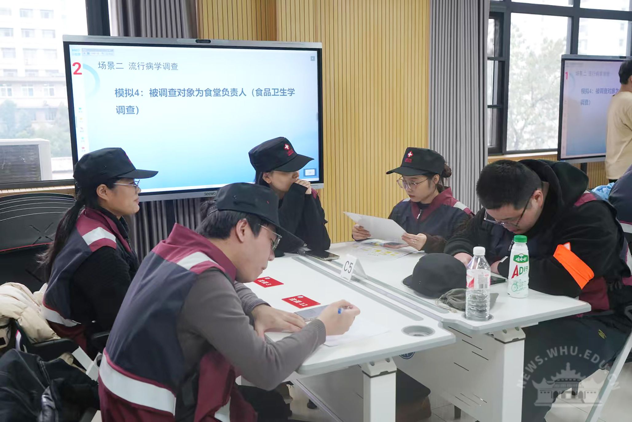 此次实战演练暨技能竞赛活动,以暴发未知传染病为背景,模拟突发公共卫生事件应急处置的全过程,共有120名医学生以自由组队形式,分成12支队伍参加活动,围绕指挥调度、流行病学调查、标本采集与实验室检测、现场消毒处置和风险沟通五个环环相扣、层层推进的环节,真实再现参与处置突发公共卫生事件的全流程,最终通过武汉市疾控中心专家组和公共卫生学院教授组现场打分的形式,决出前四名优胜者。