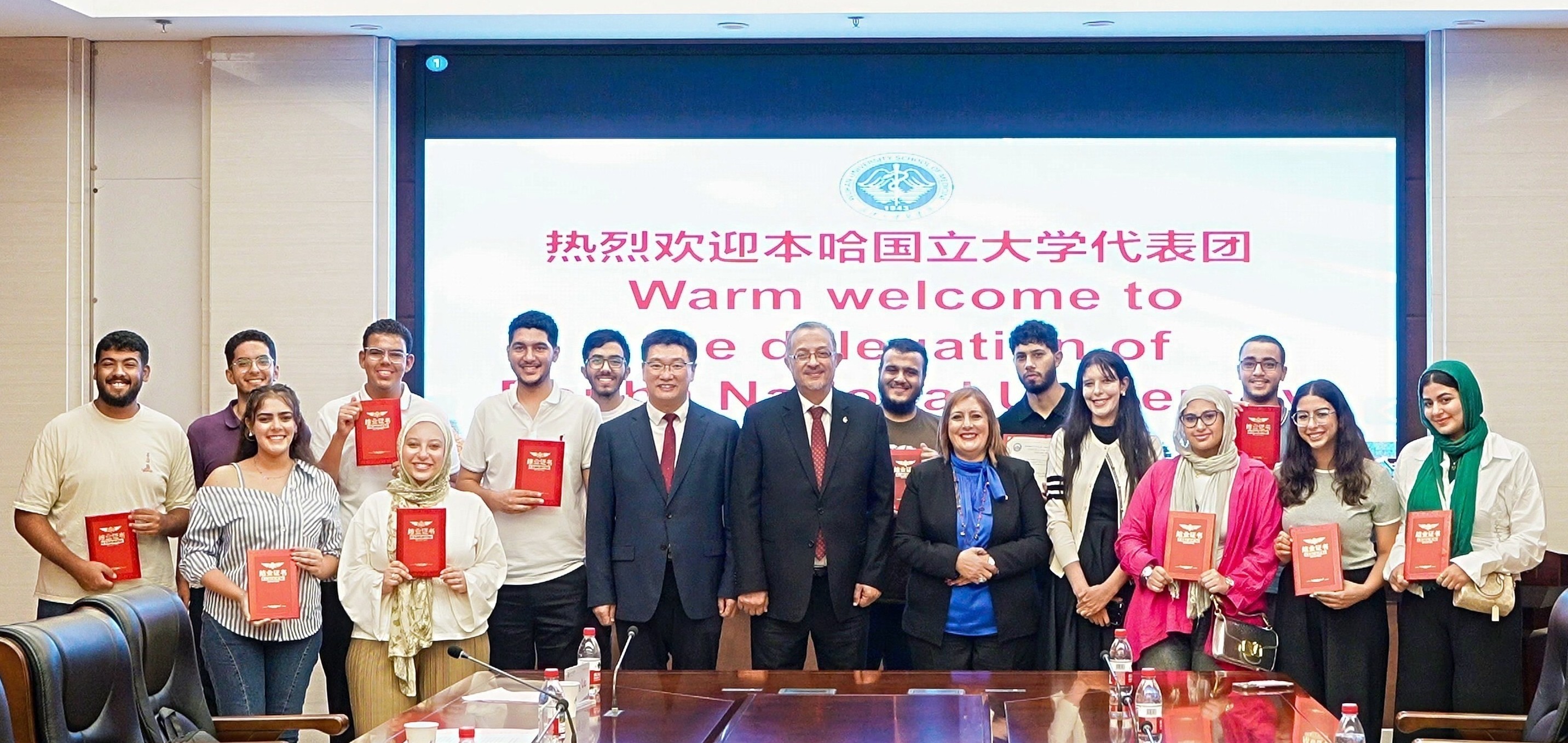 与埃及本哈国立大学“临床实训+文化体验”双向师生交流项目成功举行。埃及本哈国立大学副校长 Karim Eldash 教授、口腔医学院院长 Samia Elazab 教授、 教师Rana Hazem 及 13 名医学生到访我校;我校则由来自埃及本哈国立大学的留学生Tamer Saleh 博士带领 8 名医学生赴埃及本哈国立大学开展交流学习。双方以 “专业互鉴、文化交融” 为核心,实现了卓有成效的校际互动。