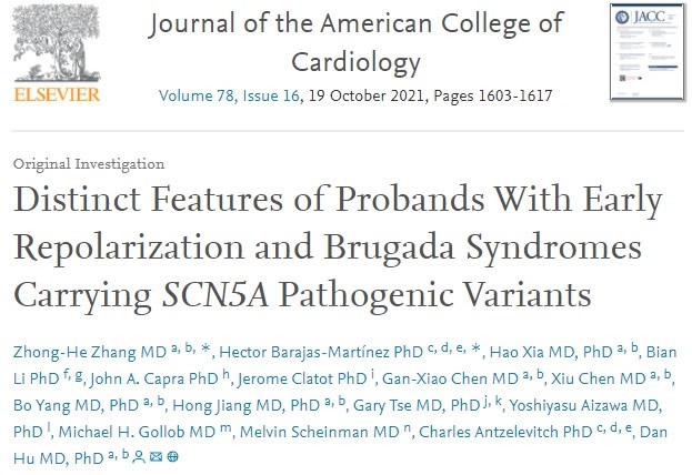 论文题目为“Distinct Features of Probands With Early Repolarization and Brugada Syndromes Carrying SCN5A Pathogenic Variants”(《携带SCN5A致病性变异的早期复极综合征和Brugada综合征的先证者的特性》)。快猫短视频