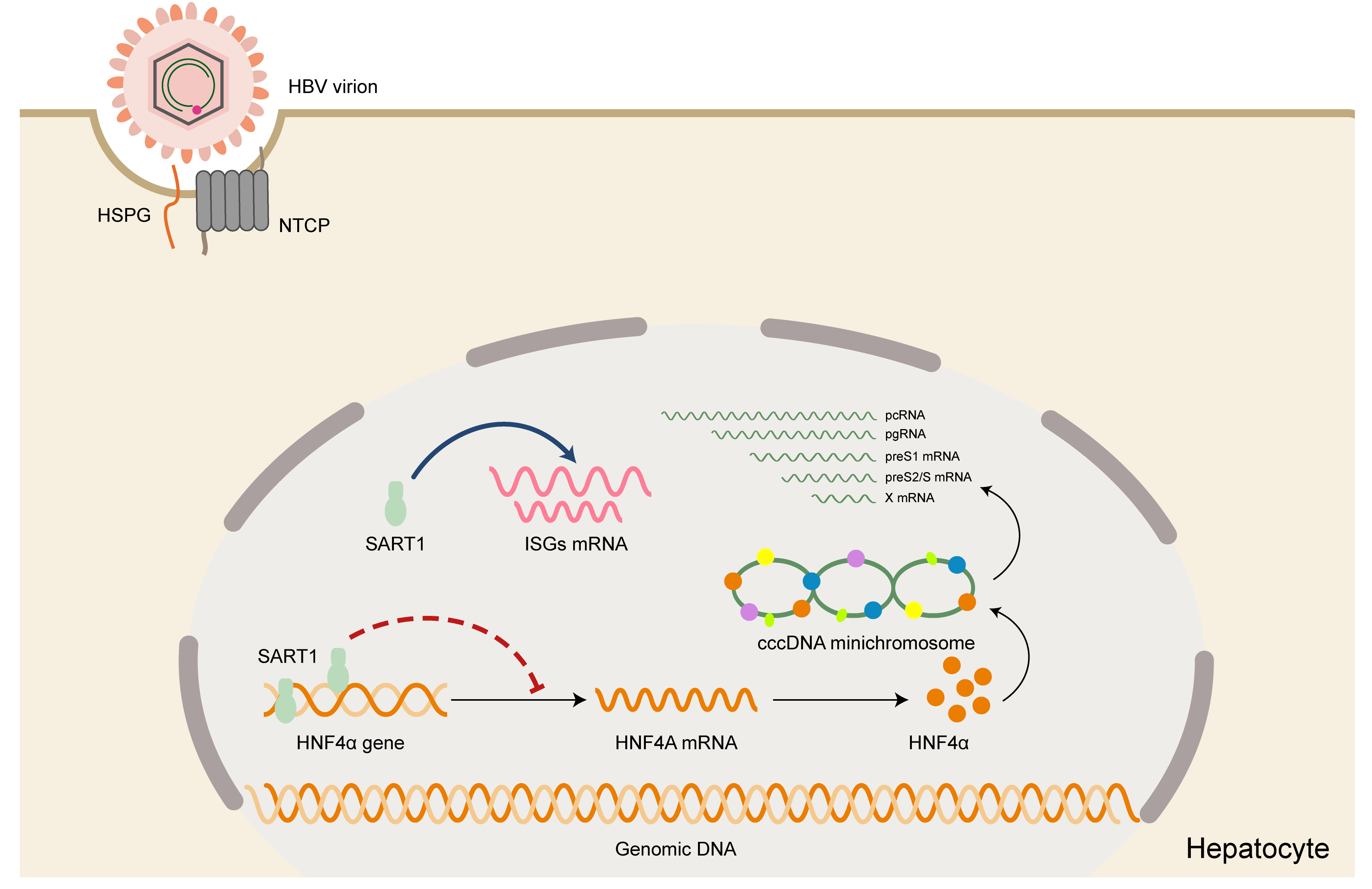 基础医学院医学病毒学研究所、病毒学国家重点实验室固定PI夏宇尘教授课题组在国际肝脏病学权威期刊《Journal of Hepatology 》(IF=25.083)发表题为Novel function of SART1 in HNF4α transcriptional regulation contributes to its antiviral role during HBV infection的研究论文。该研究阐明了宿主因子SART1(Spliceosome associated factor 1,剪接体相关因子1)抑制乙肝病毒(HBV)感染的分子机制,为抗病毒治疗提供了新靶点。