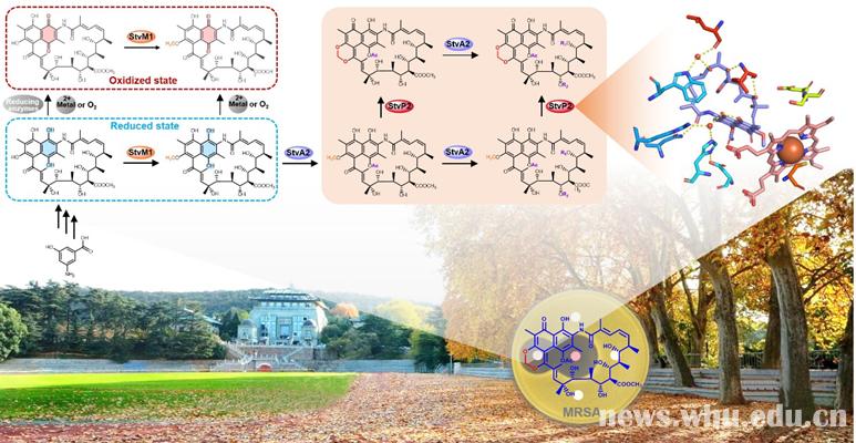 药学院孙宇辉教授和张郑宇特聘研究员课题组最新研究成果。该研究在活性天然产物曲张链丝菌素(Streptovaricins)中亚甲基双氧桥结构生物合成机制方面取得重要进展。
