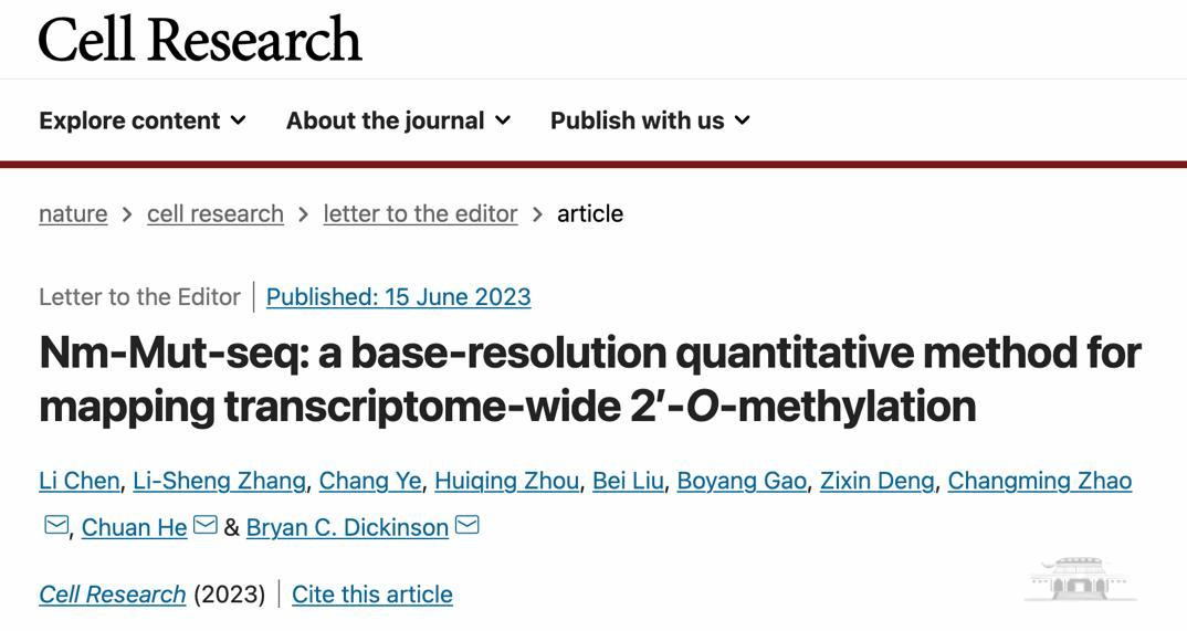 药学院邓子新院士团队和芝加哥大学化学系Chuan He教授团队合作,在Cell Research(一区,IF=44.1)发表了题为“Nm-Mut-seq: abase-resolution quantitative method for mapping transcriptome-wide 2′-O-methylation”的研究论文(2023年6月15日上线)。陈黎博士是该论文的第一作者,芝加哥大学Li-Sheng Zhang博士和Ye Chang博士为共同第一作者;快猫短视频
