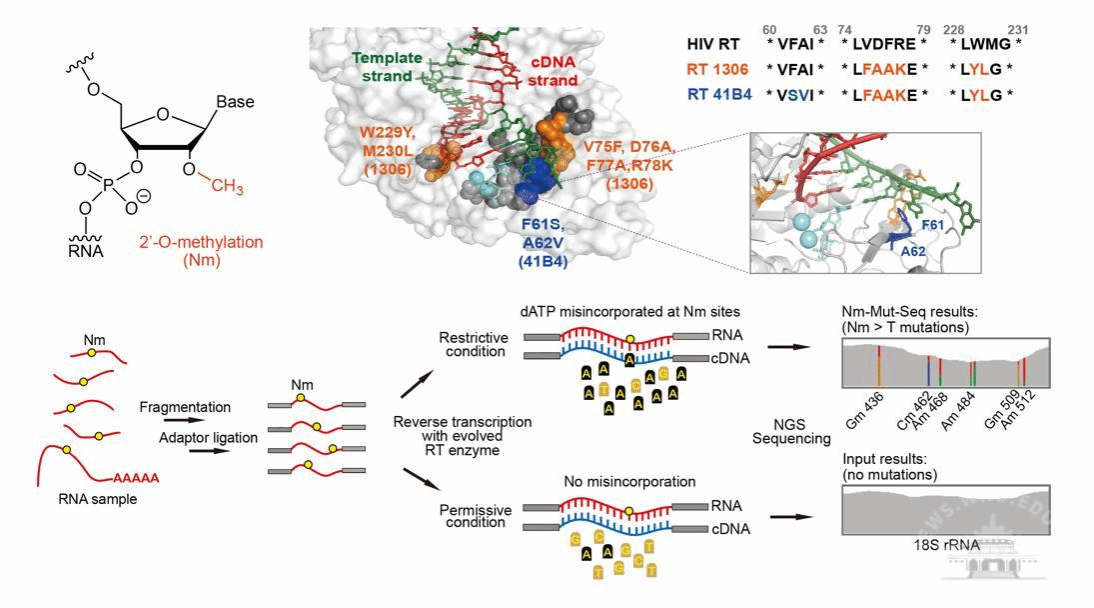 该项研究开发了针对RNA上2’-O-甲基化(Nm)修饰的测序方法。2’-O甲基化是细胞内含量最丰富的RNA转录后修饰之一,它在调节真核RNA的稳定性和功能中起着关键作用,具有非常重要的生理功能。但是由于缺乏灵敏有效的Nm修饰定位方法,真核生物mRNA中的Nm修饰研究一直受到阻碍。为了突破这一瓶颈,本研究开发了一种基于逆转录酶的新方法,即Nm-Mut-seq,用于定量绘制转录组范围内的2’-O-甲基化修饰。