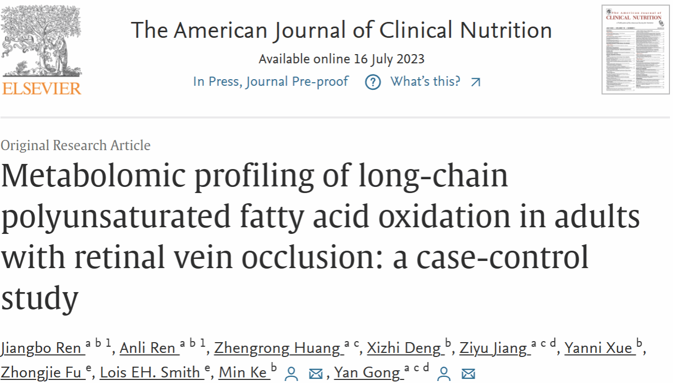 论文题为“Metabolomic profiling of long-chain polyunsaturated fatty acid oxidation in adults with retinal vein occlusion: a case-control study”(RVO患者LCPUFA氧化代谢组学特征的病例对照研究)。快猫短视频