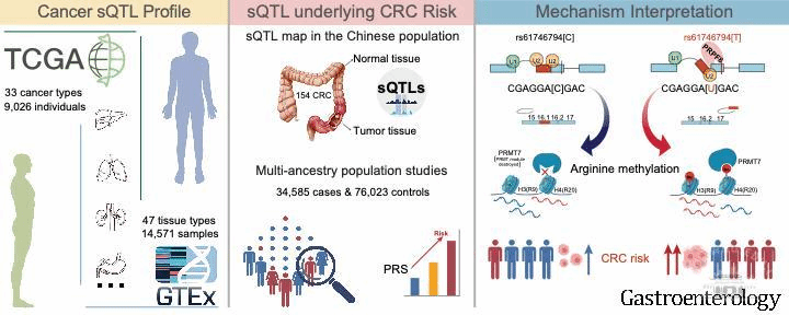 该研究提供了迄今为止最全面的肿瘤sQTLs图谱及中国人群的结直肠癌sQTLs遗传图谱,揭示了sQTLs在肿瘤发生发展中独立而重要的作用,为解析人类复杂疾病的遗传易感机制提供了新方向,并可作为肿瘤高危人群精准识别的潜在分子标志物。