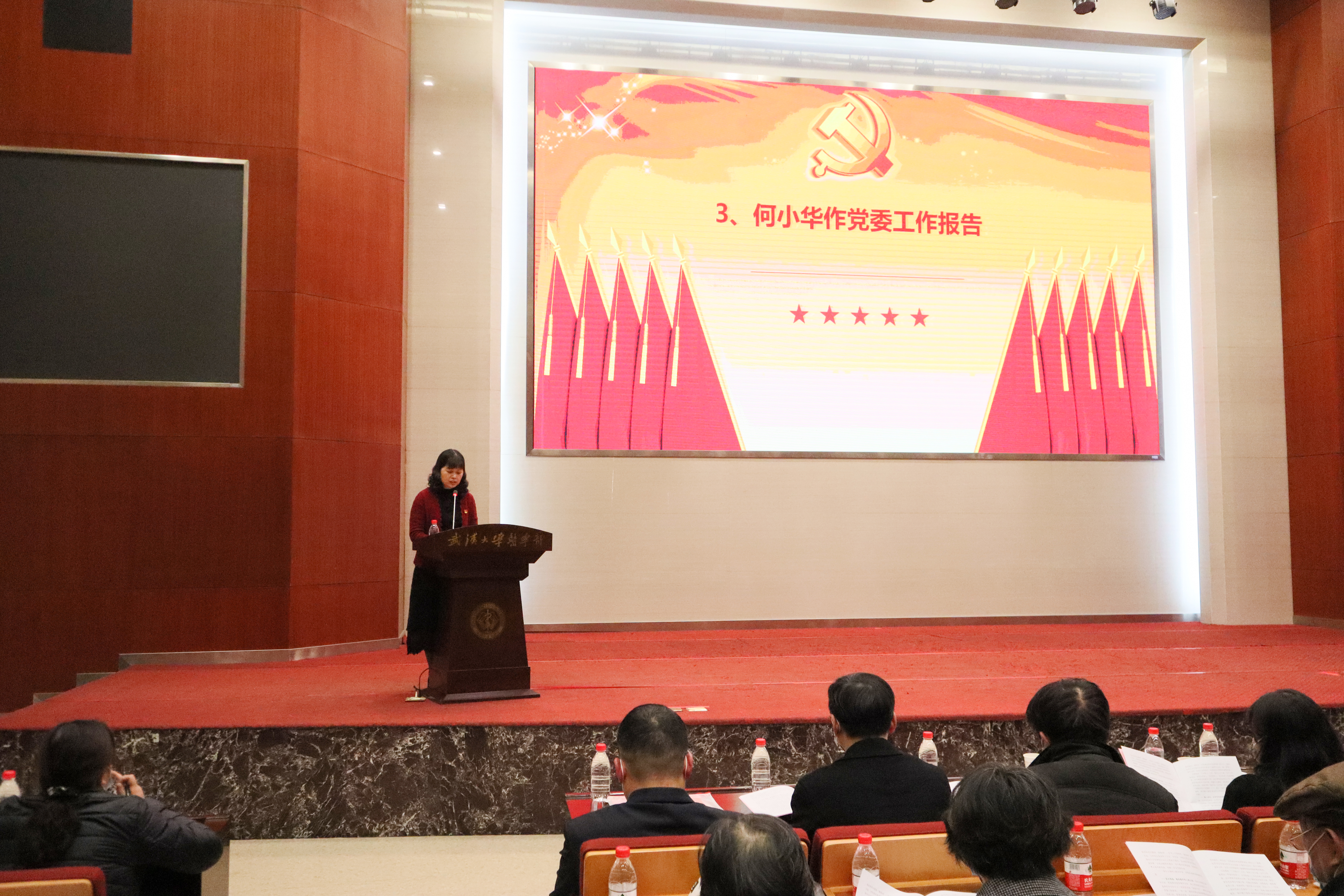 何小华代表第三届党委向大会作了题为《立德树人担使命 追求卓越创一流——推动学院在新的起点上实现高质量发展》的工作报告。她谈到,过去四年,学院党委以习近平新时代中国特色社会主义思想为指导,坚决执行学校党委决策部署,全面加强党的建设,全力推动改革发展。一方面,落实立德树人根本任务,学院各项事业取得新进展:教育教学再上新台阶,科学研究取得新成果,人才队伍形成新方阵,合作交流迈向新高度,社会服务达到新水平,并充分发挥专业优势,助力疫情防控。另一方面,落实新时代党的建设总要求,学院党建工作呈现新局面:巡察整改工作落实见效,思想政治建设创新发展,基层组织建设落细落实,党风廉政建设持续向好,学院文化建设不断深入。