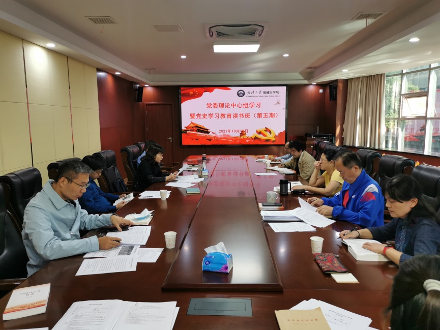 11号楼2楼大会议室举办党委理论中心组学习暨党史学习教育读书班(第五期),全体院领导班子成员和党委委员集中学习习近平总书记在中央人才工作会议上的重要讲话、习近平总书记在纪念辛亥革命110周年大会上的重要讲话,原文领读学习《中国共产党简史》部分篇目。会议由党委书记何小华主持。
