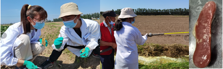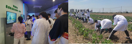 在公安基地,同学们观察到血吸虫病小鼠虫卵肉芽肿的巨脾,使理论知识更加鲜活,帮助其探索导致巨脾型晚期血吸虫病的原因、掌握致病的机制。在血吸虫病健康教育馆,同学们进一步了解了建国以来不同阶段我国所采取的血吸虫病防治策略,是与我国当时的生产力发展水平相一致,参观了曾经在查病治病过程中所使用过的老设备与器具,引导学生运用辩证思维解释我国血吸虫病防治策略的转变。同学们还争先恐后地运用VR技术进行仿真查螺,又顶着烈日来到野外田间地头实地采集钉螺,比较仿真与现实的异同。采集过程中,同学们虚心向血防人员学习,努力练就“火眼金睛”,将在泥土中的钉螺一个一个揪出来;同学们还互帮互学,先掌握技术的同学示范给未掌握的。在江陵基地,同学们在查螺的同时,还进行灭螺实操,巾帼不让须眉,女同学也绝不甘落后。这种理论与实践结合的方式,让同学们对理论知识有了更深刻的理解。虽然天气炎热,同学们不到半小时就已汗流浃背,脱下来的手套里灌满了汗水,但“每个细胞都要空凋滋润、温室里长大的嫩苗”,经受住了烈日的考验!这也让同学们更加理解血防工作取得成就的不易,哪有什么岁月静好,不过是有人在替你负重前行。吾辈之青年,未来定能不畏艰辛、砥砺前行。