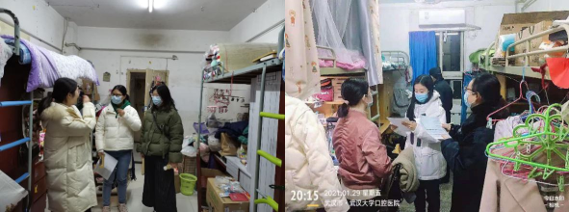 走访留校学生寝室。1月27日至29日,我院学工办辅导员、班级导师联合医院保卫部、院务处深入留校学生宿舍,详细询问留校期间的生活状况,检查指导留校学生疫情防控工作,嘱托同学们合理安排临床实习、科研学习时间,注意用水用电安全,对于居住在校外公寓的同学尤其应注意人身及财产安全,并代表学院向留校学生致以春节的问候。