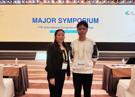 谢天(右)与导师张秋萍教授参加国际免疫学大会