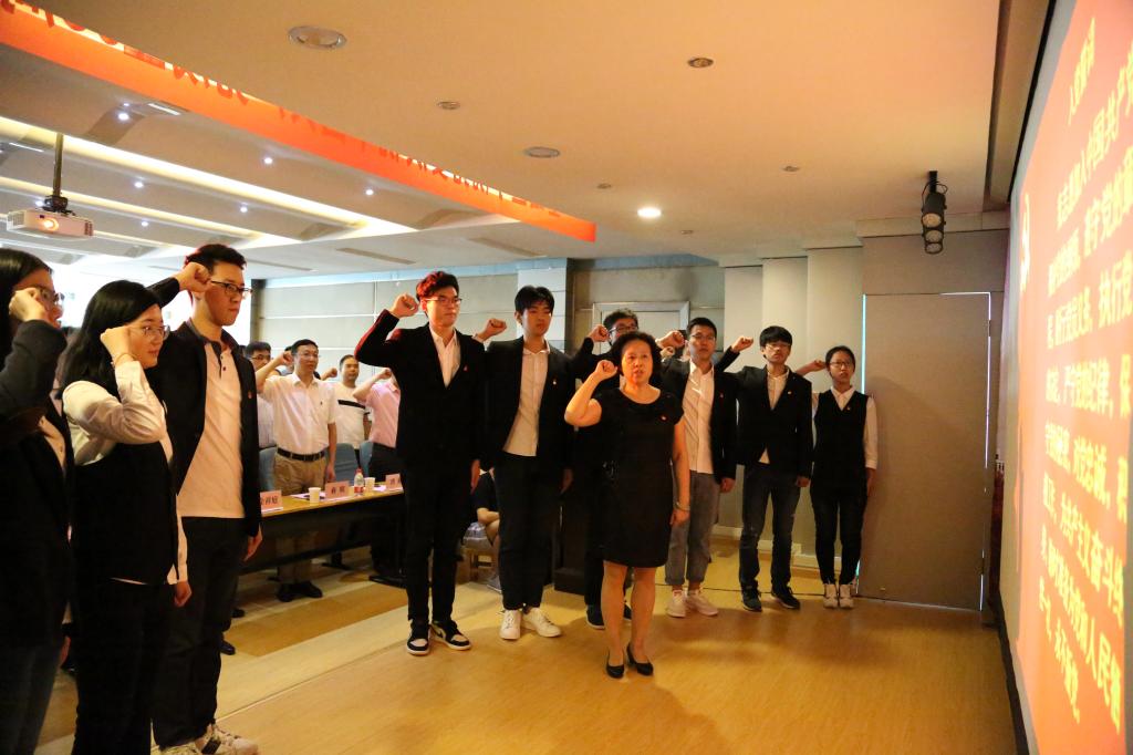 余祥庭、院党委书记蒋明和李红良为12名新党员佩戴党员徽章。院党委副书记洪燕带领全体党员宣誓,在庄严的入党誓词中共同重温光辉的历史,进一步明晰肩上的重任。