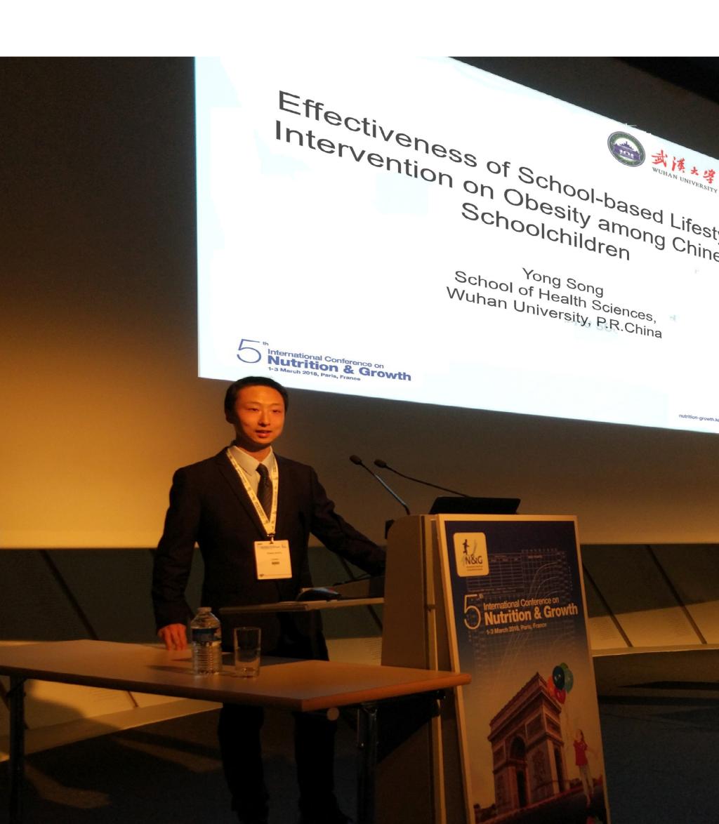 第5届国际营养与生长发育年会(The 5th International Conference on Nutrition and Growth,N&G 2018)日前在法国巴黎举行,我校健康学院2016级博士生宋勇受邀作口头报告,获大会肥胖研究论文奖(Obesity N&G Research Award),并接受雀巢营养科学院(Nestlé Nutrition Institute,NNI)记者专访。本次大会仅2人获奖,宋勇为唯一学生身份获奖者(获奖情况见会议网站