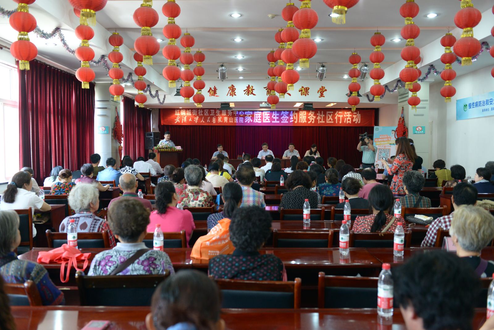 我院唐其柱院长、沈吟副院长等院领导出席该中心家庭医生签约服务社区行活动启动仪式。唐其柱院长在致辞中表示,我院作为湖北省首家公立医院,积极响应中央号召,将我院优质医疗资源下沉,让人民群众特别是居民朋友能够就近享受到人民医院提供的健康服务。
