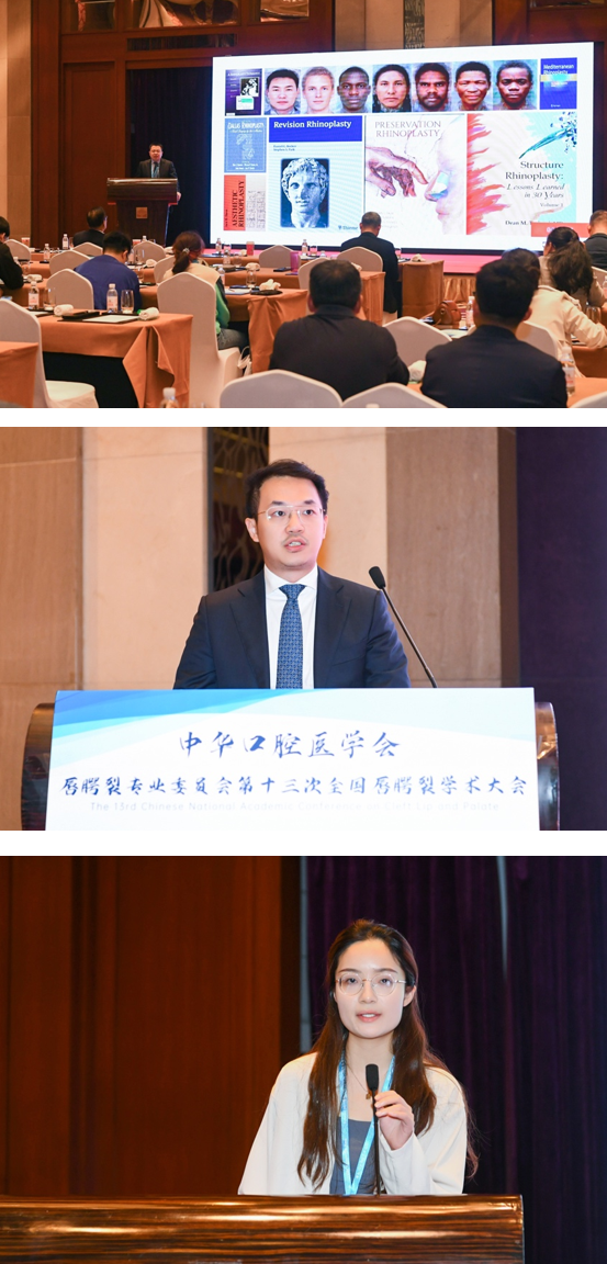 钦传奇医师分别汇报《鼻整形术的内涵和术语命名方法》《软腭发育不全的腭咽闭合功能重建》,杨解纲医师汇报《直肌筋膜-肋软骨颗粒复合体在单侧唇裂二期鼻整形中的应用》,谢莹医师汇报《B超检查在单侧唇隐裂个性化治疗中的应用》《改良Mulliken法在矫治双侧唇裂术后鼻唇畸形中的应用》,董哲医师汇报《自体髂松质骨混合Bio-Oss用于单侧牙槽突裂植骨术的3D-CBCT评价》,岳叶欣医师汇报《内窥镜辅助下的经缝牵引成骨术在矫正面中部发育不良中的应用》,受到了与会代表的一致好评。