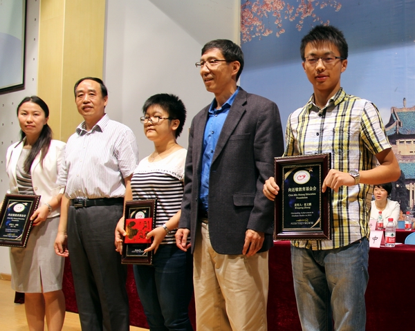 王传中、“向近敏教育基金会”董事会主席向家宁先生、“廖康雄奖学金”国内负责人廖威先生为获奖师生颁奖